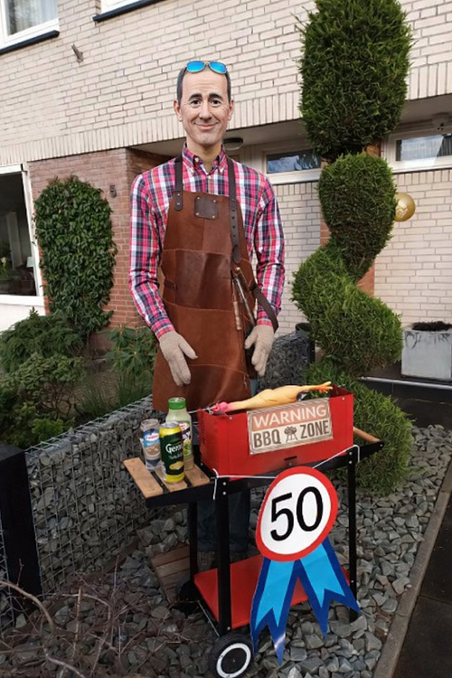 Voor de echte BBQ man..... Elke week lekker grillen met de lekkerste stukken vlees. De Abraham pop huur je inclusief alle afgebeelde attributen. Kan uiteraard ook met een ander masker geleverd worden.